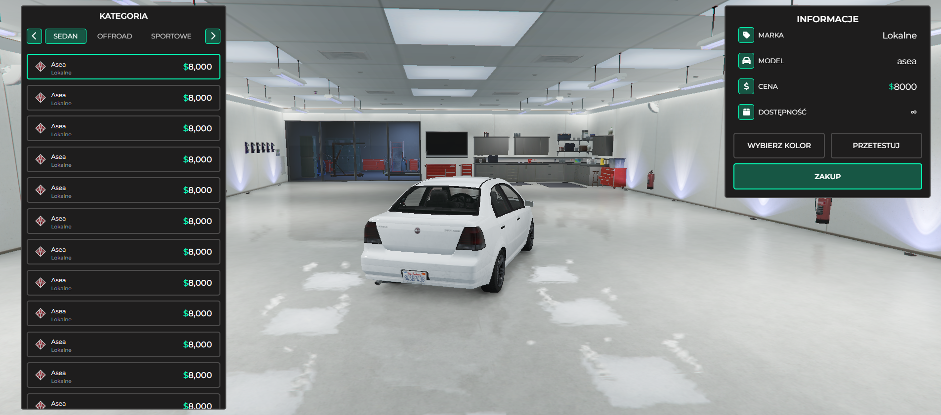 Wygląd tego cardealera był remake'owany pod mój serwer, jest to full-script który posiada cały front-end oraz back-end. Skrypt ten jest rozbudowany o rzeczy takie jak chociażby jazda testowa, czy wynajem pojazdu.