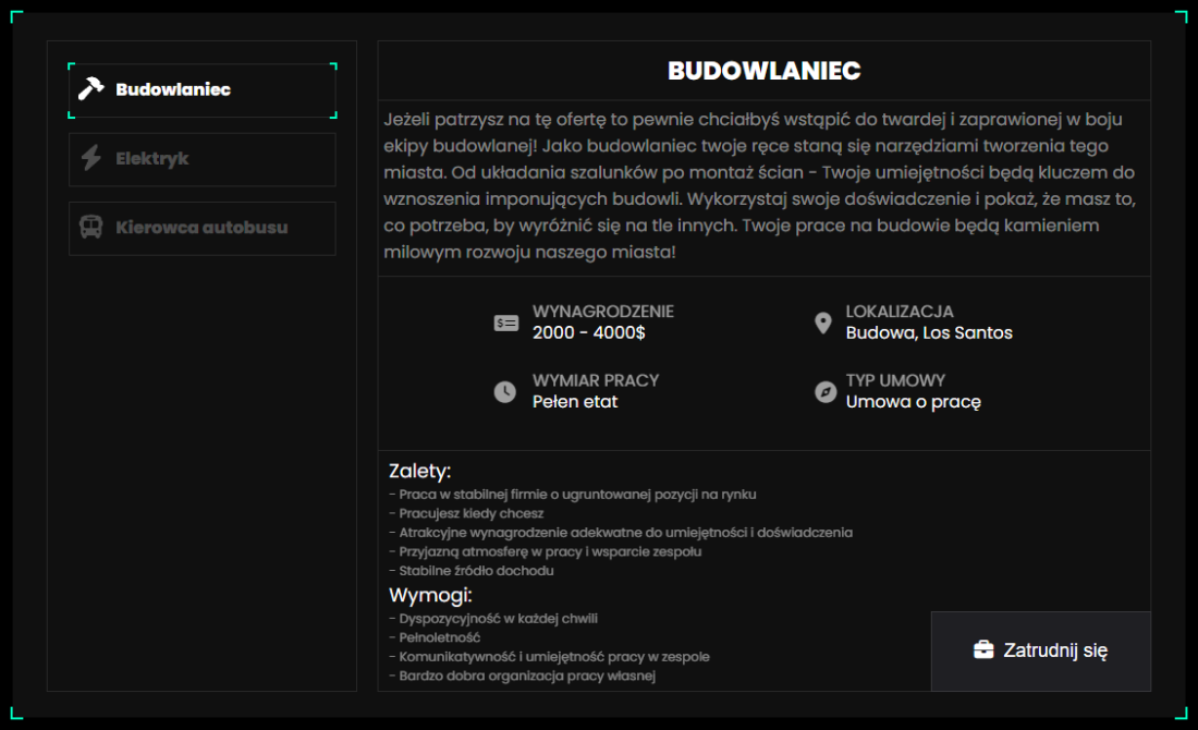 Wygląd tego urzędu pracy był projektowany od zera na mój serwer, jest to autorskie UI urzędu z własnoręcznie napisanym front-end'em oraz całym back-end'em.