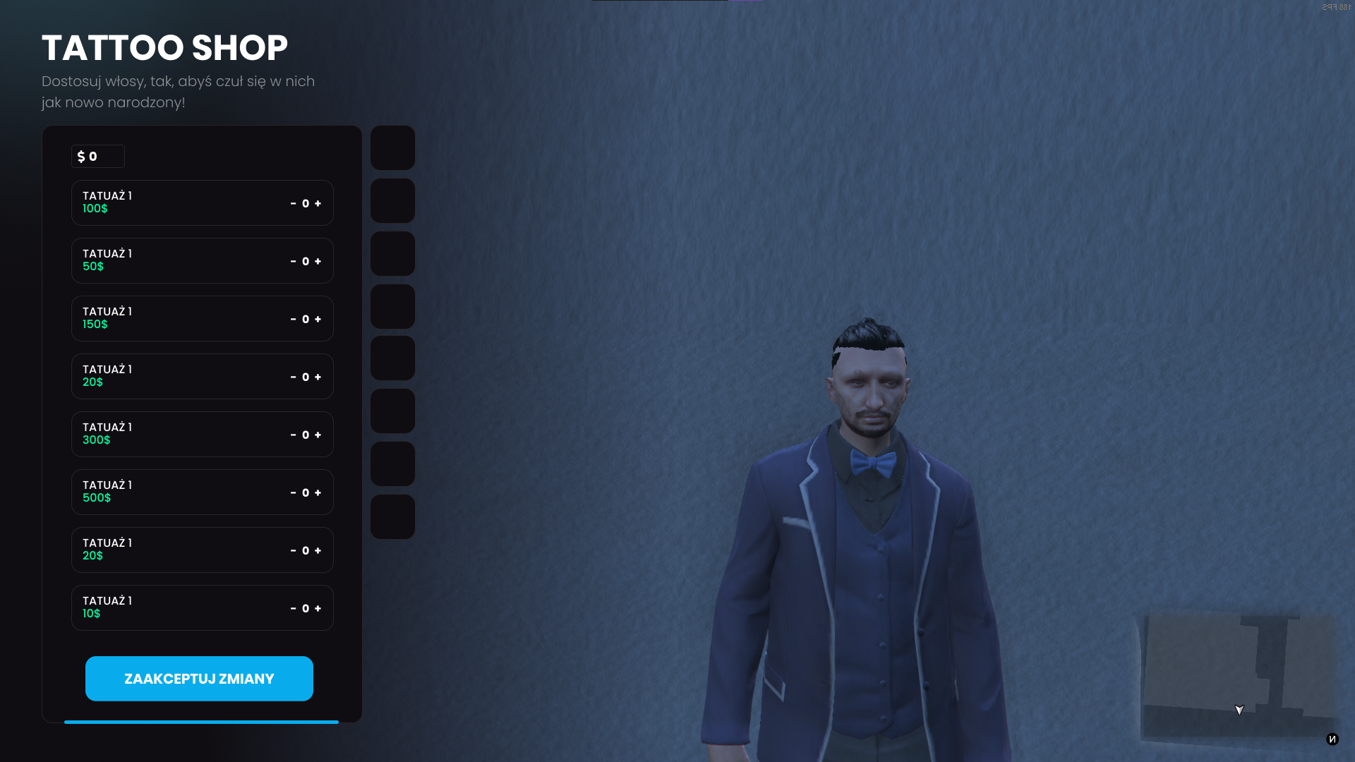 Wygląd tych wszystkich menu był projektowany przez klienta, jest to odwzorowanie 1:1 projektu z figmy klienta na kod. Skrypt ten jest w pełni skończony z własnoręcznie napisanym front-end'em oraz całym back-end'em.